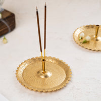 Crafted from high-quality brass, this agarbatti holder radiates a captivating lustre that complements any setting. Its durable construction ensures lasting beauty and utility. Whether gracing your meditation altar, enhancing your living room decor, or serving as a focal point during festive poojas and other special occasions, this agarbatti / incense stand seamlessly integrates into any space.