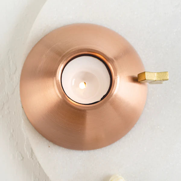 Regular price ₹1,200The diamond shaped Kaju Katli, one of India’s most loved desserts, plays muse to this handspun pure copper tealight, with a diamond brass handle.