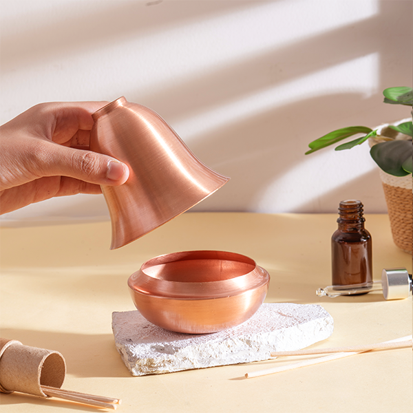 Serenity Reed Diffuser takes inspiration from the forms of mushroom, found in nature.One can enhance their home ambience with this Copper- Patina reed diffuser by making a fragrant addition to the tidy space in their homes.