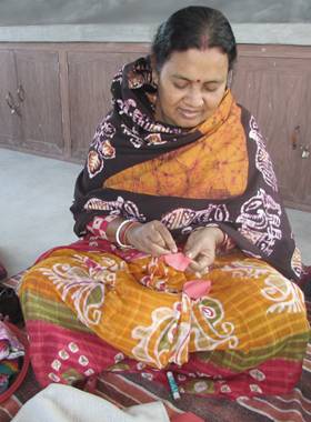 In a small village called Chaksimultala in West Bengal, the weavers’ looms make beautiful rhythmic sound as lengths of cotton yarn are intricately hand-woven into metres of fabric. This society of weavers called Chhandabrati, has about 30 artisans (both men and women) associated with the entire process of weaving, right from dyeing of the yarn, preparing bobbins, winding the yarn from hank to spool, weaving itself and also post weaving work like finishing, embroidery and making fringes. The looms and equipments in use today, were set up almost 45 years ago. This cluster uses azo-free dyes and has recently installed an effluent treatment plant; in keeping with international norms for eco-friendly waste disposal.