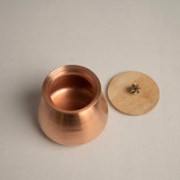 Your container needs daily care to prevent the oxidation process of copper. Wash with a soft cloth and Pitambari or lime & salt or vinegar & salt or tamarind. Wipe dry immediately or else water residues will leave stains. Some waters cause dark spots on copper. To remove, apply tamarind or vinegar or lime concentrate and leave for 15 minutes. Wash off with clean water. To clean the wooden components of your product, wipe with a soft dry cloth. Never use detergents or cleaning solutions on the wooden components.
